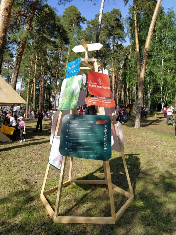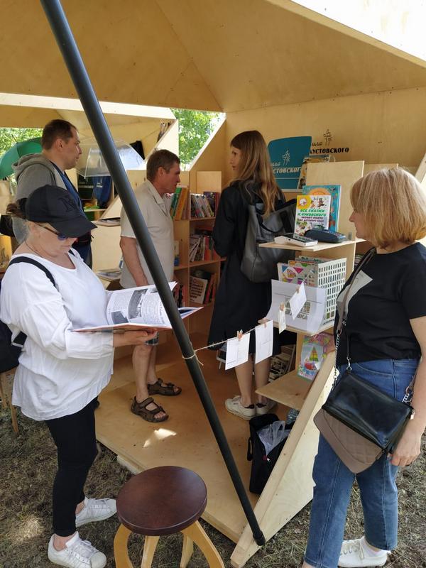 4 июня 2022 года в поселке Солотча сотрудники Книжной лавки Рязанской областной универсальной научной библиотеки имени Горького приняли участие в первом ленд-арт-фестивале «Земля Паустовского».