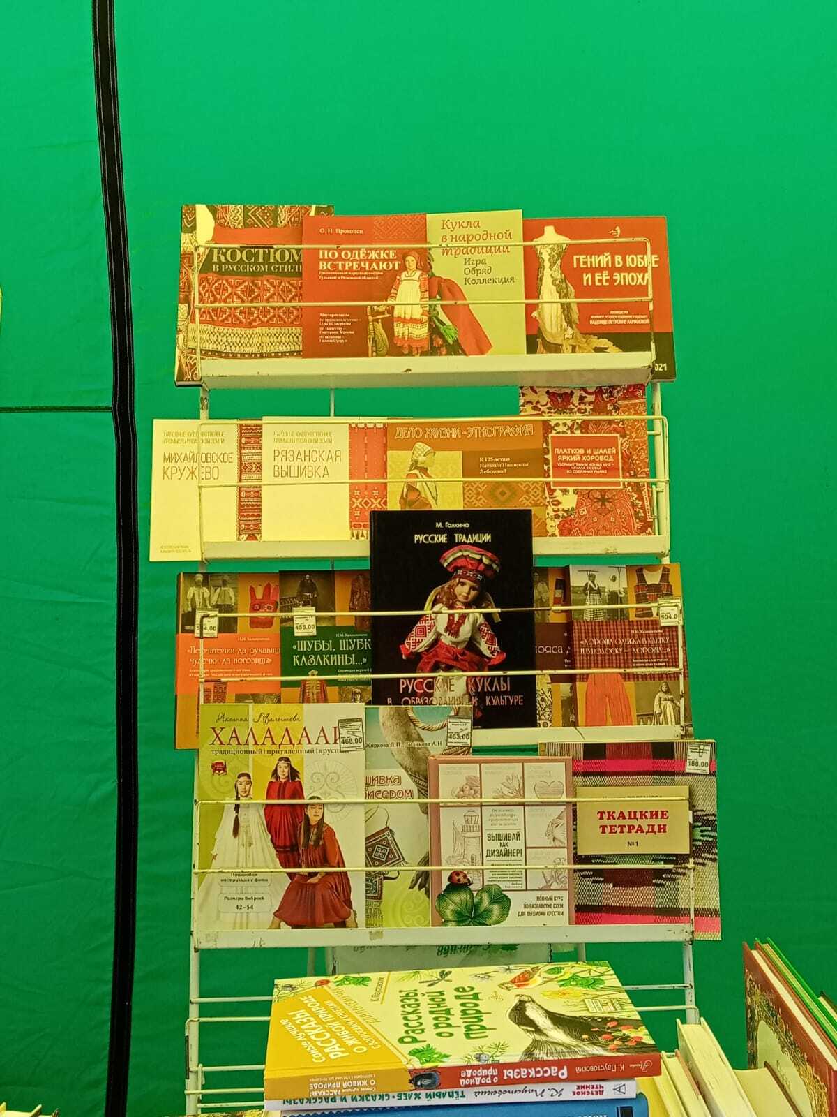 Для посетителей фестиваля Книжная лавка предоставила большой выбор книг о народных художественных промыслах России, русской культуре и народных традициях: «Чудеса народных промыслов России», «Календарные традиции русского народа», «Мифы и легенды Древней Руси», «Сказы о жизни и быте русского народа», «Костюм в русском стиле», «Кукла в народной традиции. Игра. Обряд. Коллекция», в том числе книги о народных художественных промыслах и традициях Рязанского края: «Скопинская керамика», «Михайловское кружево», «Рязанская вышивка», «Традиционная одежда Рязанской губернии XIX-XXвв.» и другие. Книги по данной тематике пользовались большим спросом у участников и гостей фестиваля.