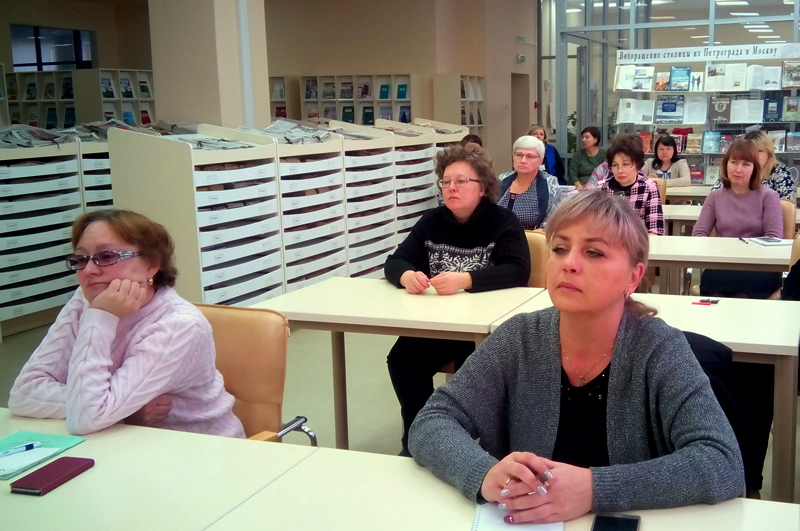 На занятии присутствовали 20 человек. Они с удовольствием прослушали обзоры новой литературы, поступившей в фонд кафедры социально-экономической и гуманитарной литературы. Встреча была очень плодотворной. Ведь она не только повысила уровень самообразования сотрудников, но и расширила профессиональные знания.