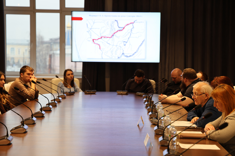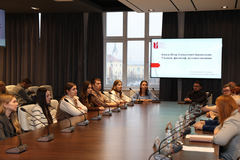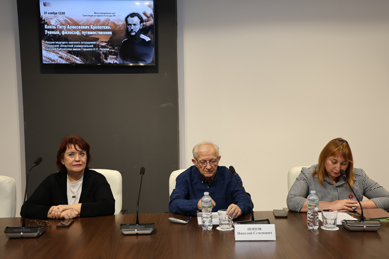 В библиотеке имени Горького в рамках мероприятий, приуроченных к памятной дате, состоялась лекция ведущего научного сотрудника библиотеки Николая Семеновича Попова «Князь Пётр Алексеевич Кропоткин. Ученый, философ, путешественник». Гостями встречи стали студенты Института истории, философии и политических наук Рязанского государственного университета имени С.А. Есенина.