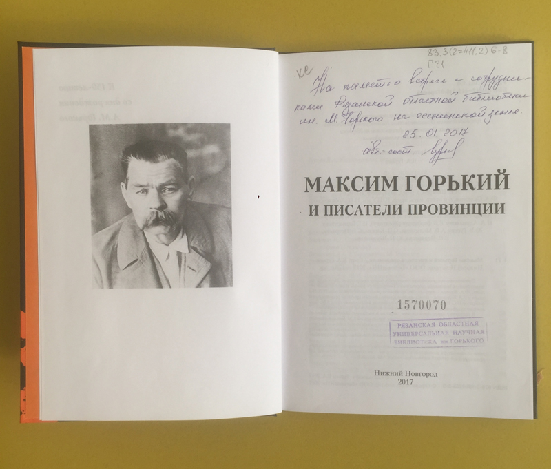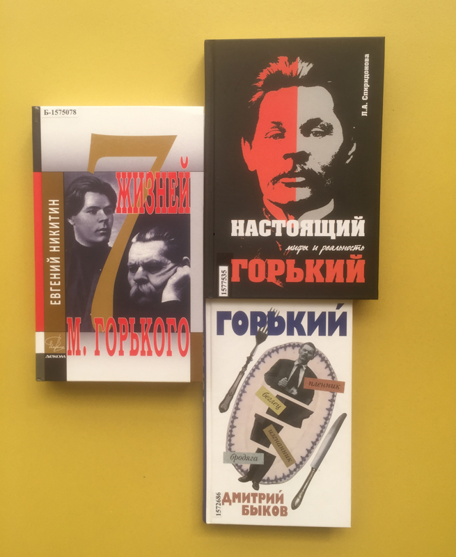 Наряду с классическими произведениями Максима Горького, библиотека располагает изданиями о жизни и творчестве знаменитого писателя, которые исследуются на основе неизвестных ранее архивных источников. Это книги Л.А. Спиридоновой «Настоящий Горький: мифы и реальность» (2016), А.И. Чарушникова «Первые книги Максима Горького» (2016), Д.Л. Быкова «Горький» (2016), Е.Н. Никитина «Семь жизней Максима Горького» (2017).