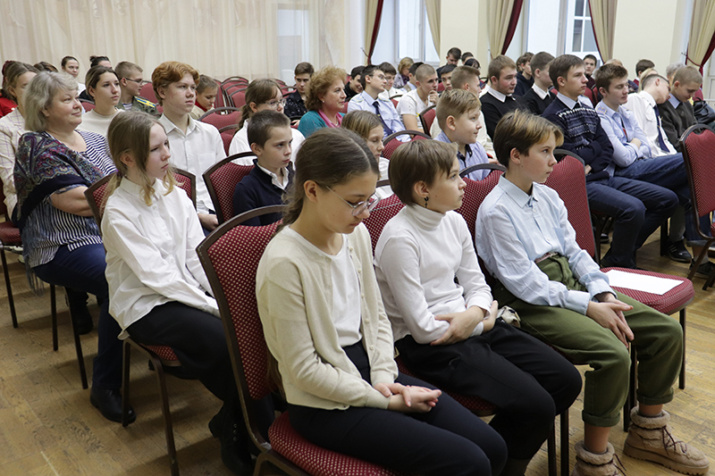 Большой конференц-зал был почти полон. Эта тема вызвала большой интерес у присутствующих – старшеклассников шести рязанских школ и студентов железнодорожного колледжа. Интересен как сам исторический факт – строительство первого военного корабля на Рязанской земле, так и представление о том, как менялись географические границы: в то время это был Коломенский, затем Зарайский уезды Рязанской губернии, а ныне – Луховицкий район Московской области.
