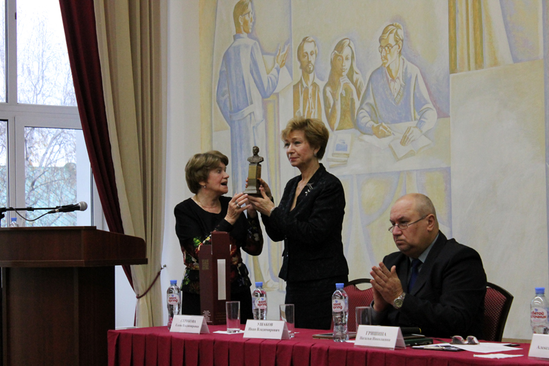 Людмила Андреевна Серебрякова, краевед-исследователь из Москвы, представила тему «Рязанцы в проекте «Аллея российской славы», обозначив имена М.Д. Скобелева, В.Ф. Маргелова, С.П. Непобедимого и других рязанцев, которым открыты памятники во многих российских городах, среди них – отец Людмилы Андреевны – командир танковой бригады, Герой Советского Союза Андрей Михайлович Серебряков. Людмила Андреевна вручила в дар библиотеке мини-бюст Героя Социалистического Труда, академика С.П. Непобедимого, уроженца Рязани.