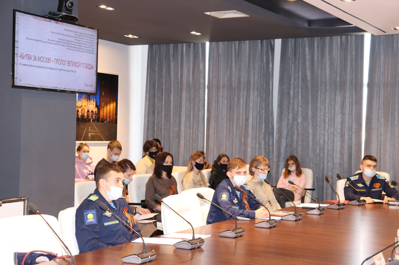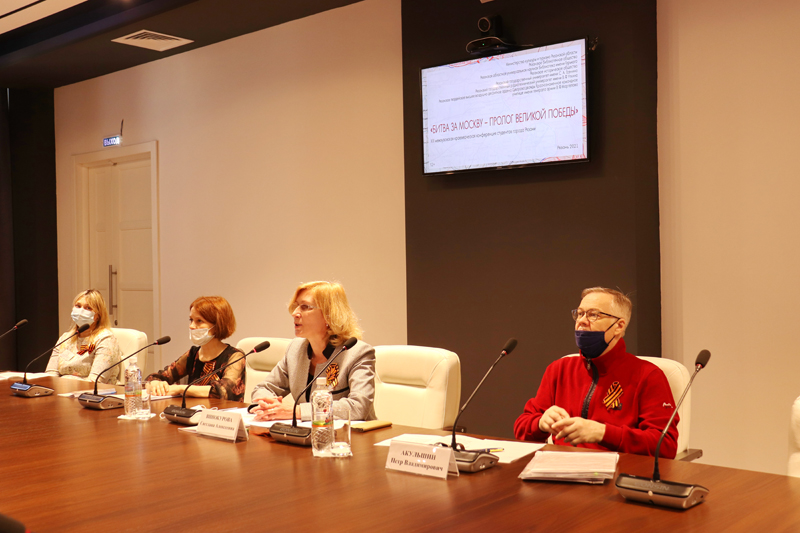 Курсант Рязанского гвардейского высшего воздушно-десантного командного училища имени генерала армии В.Ф. Маргелова (РГВВДКУ) Артем Воробьев выступил с докладом «Освобождение города Михайлова – начало контрнаступления под Москвой». Страницы биографии командующего 10-й армией Филиппа Ивановича Голикова раскрыли студентки Рязанского государственного медицинского университета имени И.П. Павлова Анастасия Пантилеева и Валерия Якушева.