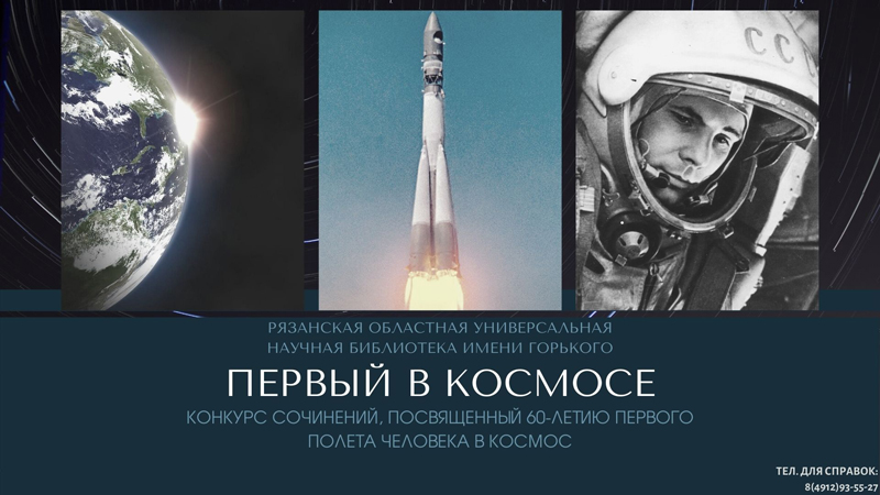 Рязанская областная универсальная научная библиотека им. Горького объявляет конкурс сочинений, посвященный 60-летию полета Юрия Алексеевича Гагарина в космос.