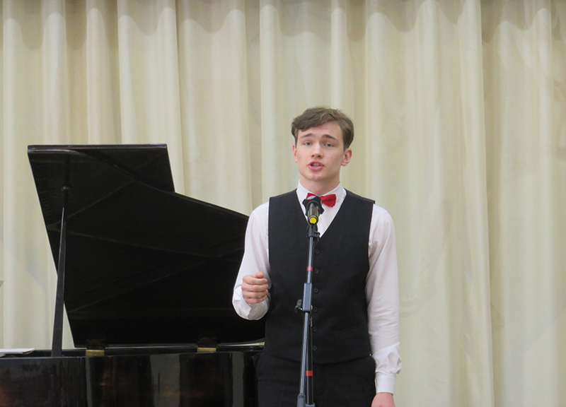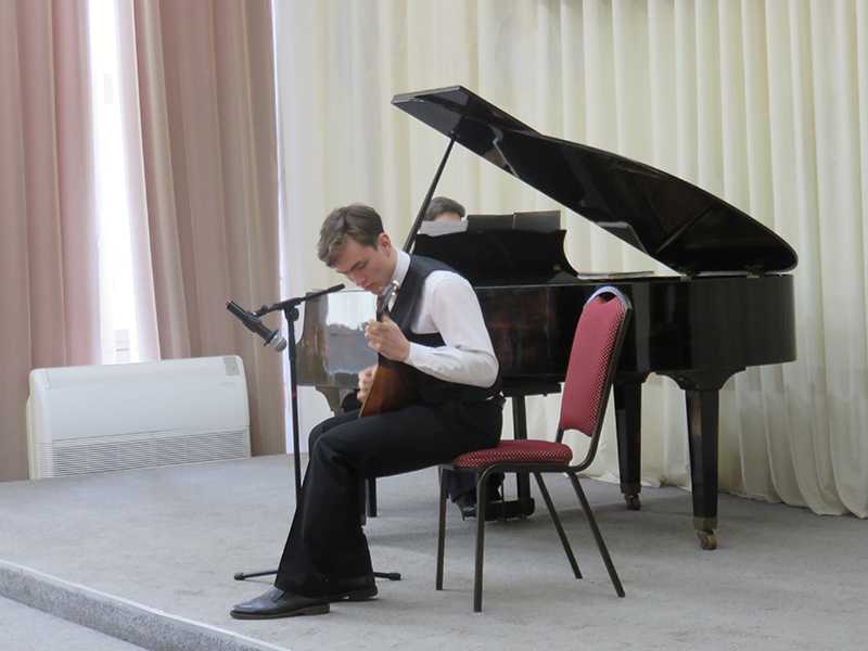 Ярких красок концерту добавило выступление выпускника детской музыкальной школы № 1 им. Е.Д. Аглинцевой Николая Заволокина, который пробует себя в разных сферах музыкального искусства. Блестяще прозвучало его соло на балалайке (класс преподавателя В.А. Чугунова, концертмейстер – Е.Ю. Зотова) с композицией «Золушка» Алексея Архиповского, русской народной песней «Из-за горочки туманик выходил» в обработке А. Данилова. Как вокалист Николай исполнил старинный русский романс «Тень высокого старого дуба». А. Панчина, «Луч солнца золотого» из «Бременских музыкантов» Г. Гладкова, «Серенаду Дон-Кихота» Д. Кабалевского.