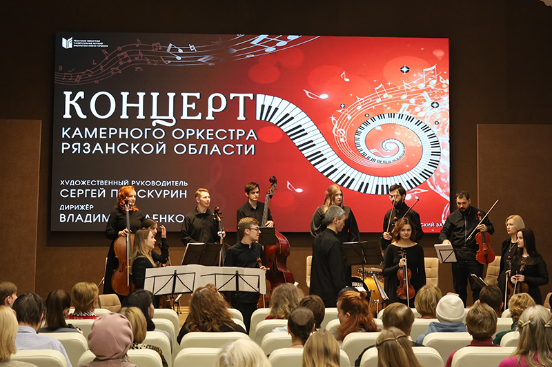 28 ноября в Горьковском зале библиотеки состоялся концерт Камерного оркестра Рязанской области (дирижер – Владимир Саенко, главный дирижер и художественный руководитель – Сергей Проскурин).