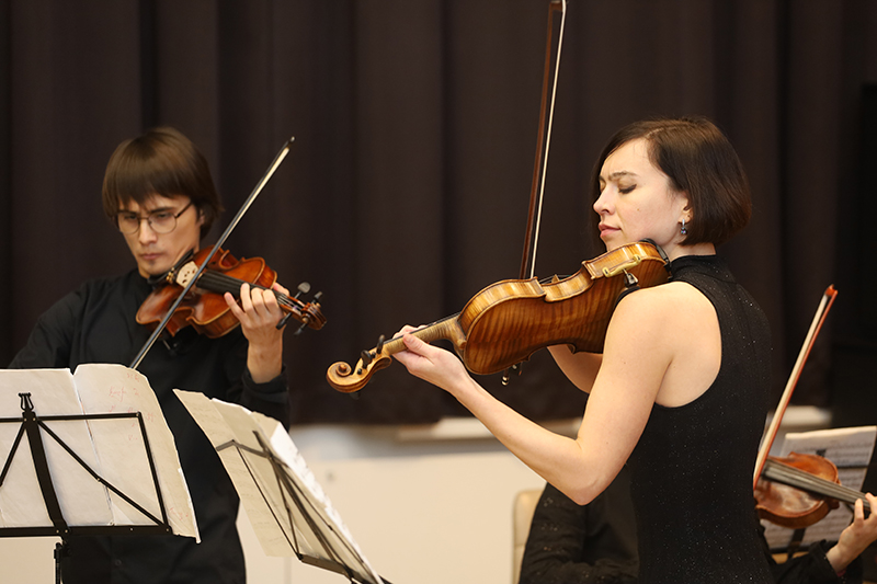Открылся музыкальный вечер «Концертом для двух скрипок с оркестром ре минор» И.С. Баха (солисты – Данил Тонигольд и Ольга Михеева). В программе концерта прозвучала и «Серенада для струнного оркестра» П.И Чайковского. По собственному признанию композитора, образцом для его струнной серенады была музыка В.А. Моцарта, а основная тема финала струнной серенады позаимствована из русской народной песни «Под яблонью зеленою». Были исполнены три танца из балета «Эстансия» А. Хинастеры – аргентинского композитора, выдающегося музыканта Латинской Америки. Лауреат международных конкурсов Татьяна Романец солировала на альте в произведении И. Брамса «Скерцо для альта и струнного оркестра из “Сонаты F-A-E”». Завершился концерт исполнением «Интермеццо» из оперы «Сельская честь» П. Масканьи.