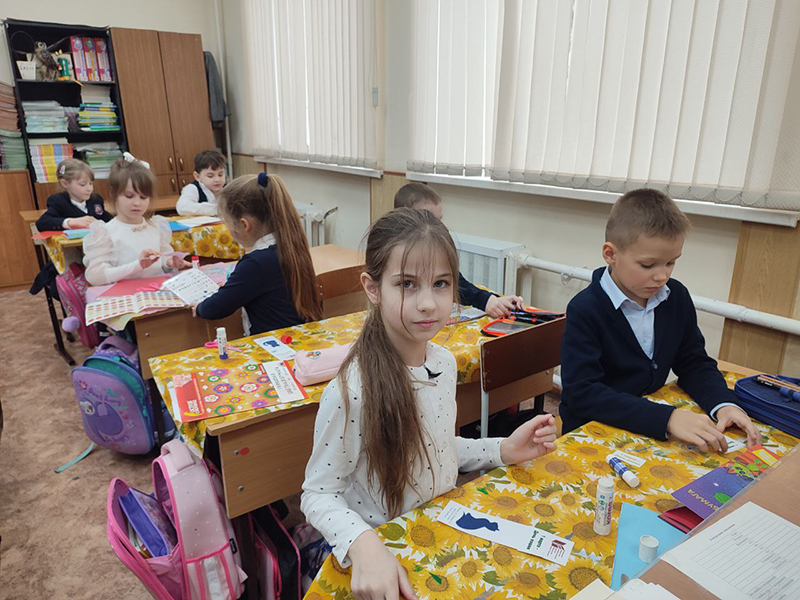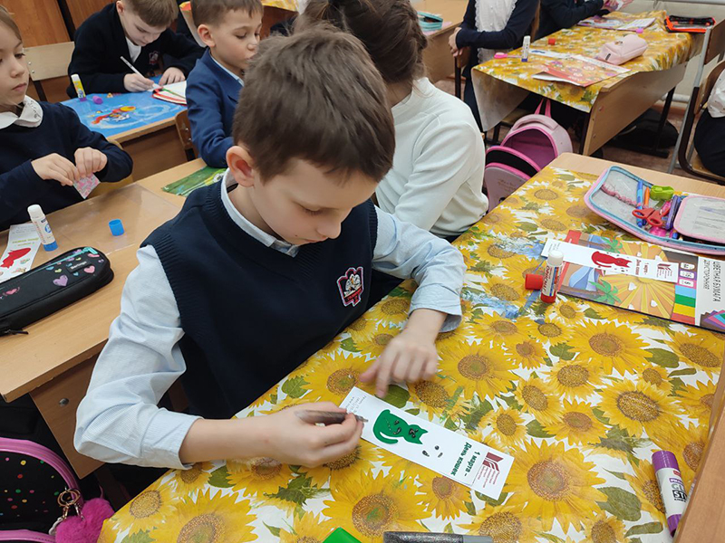На память о встрече школьники своими руками смастерили книжные закладки.