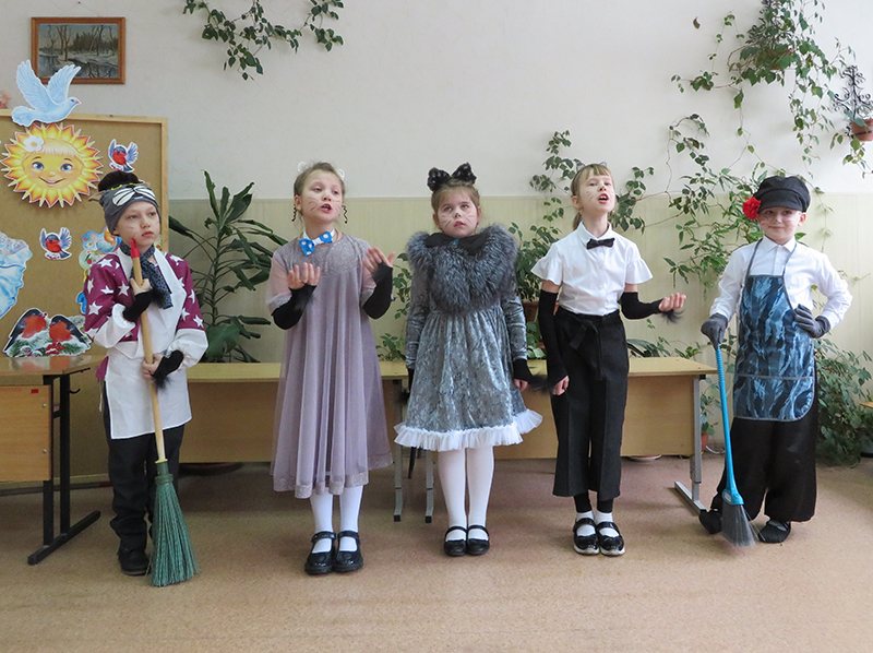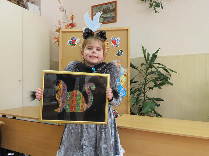 С большим удовольствием детвора рассматривала иллюстрации художника-сказочника Юрия Васнецова к книге, обзор по которой провела сотрудник кафедры детской литературы. Яркой, наполненной импровизациями, получилась сценка из мини-спектакля, подготовленного учащимися. Герои сказки оживали благодаря старательной и проникновенной игре маленьких актеров. Костюмы гармонично сочетались с образами, подчеркивая индивидуальность каждого персонажа. Достойную оценку всех учащихся и преподавателей получил танец «Кошачье ча-ча-ча» и декоративные панно, изготовленные по сюжету сказки. Яркие поделкии видеофрагмент «Кошка встречает гостей» из советского мультфильма по мотивам сказки Маршака подняли настроение всем участникам программы.