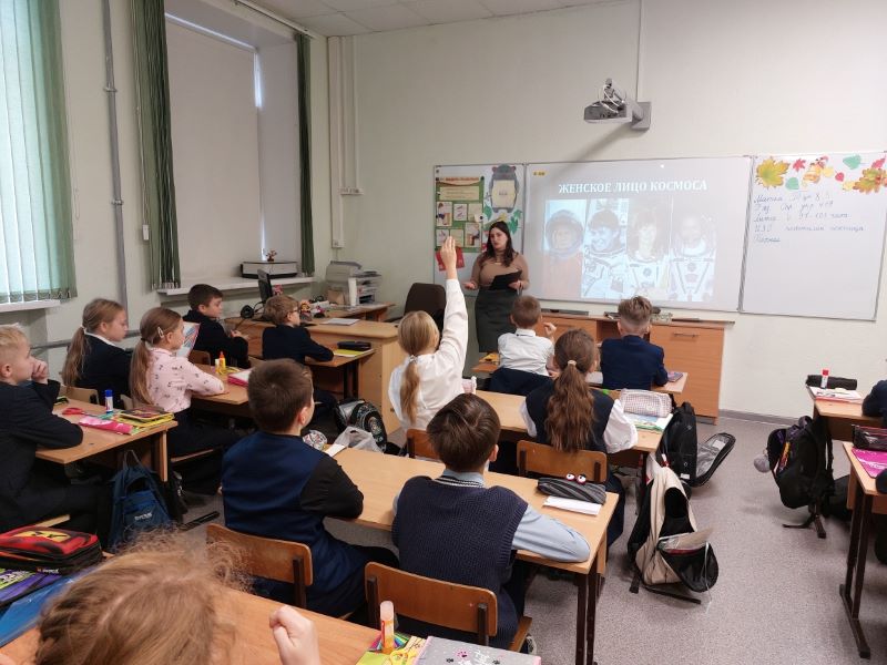 Ребята познакомились с биографиями всех шести российских женщин, побывавших в космосе: Валентины Терешковой, Светланы Савицкой, Елены Кондаковой, Елены Серовой, Юлии Пересильд, Анны Кикиной.