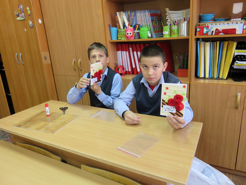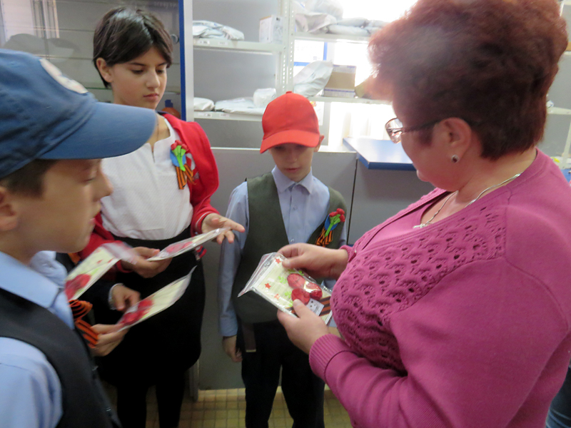 Вместе с ребятами из школы-интерната в этом году мы решили поздравить ветеранов рукодельными открытками со словами благодарности в их адрес. А чтобы поздравление стало действительно адресным, мы отнесли открытки работникам почтового отделения № 27 г. Рязани. Накануне Дня Победы почтальоны передадут наши сувениры ветеранам войны лично в руки.