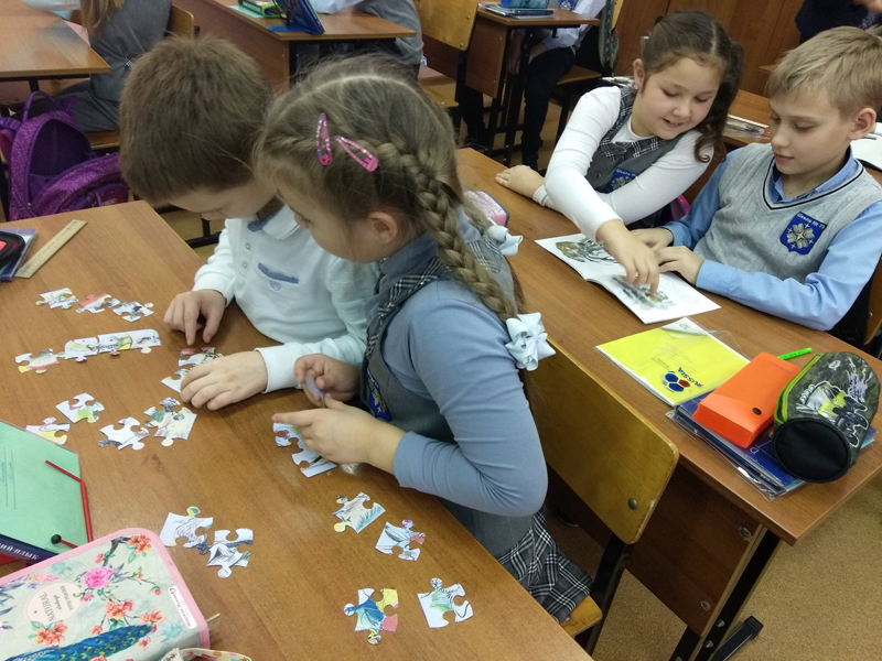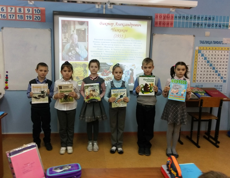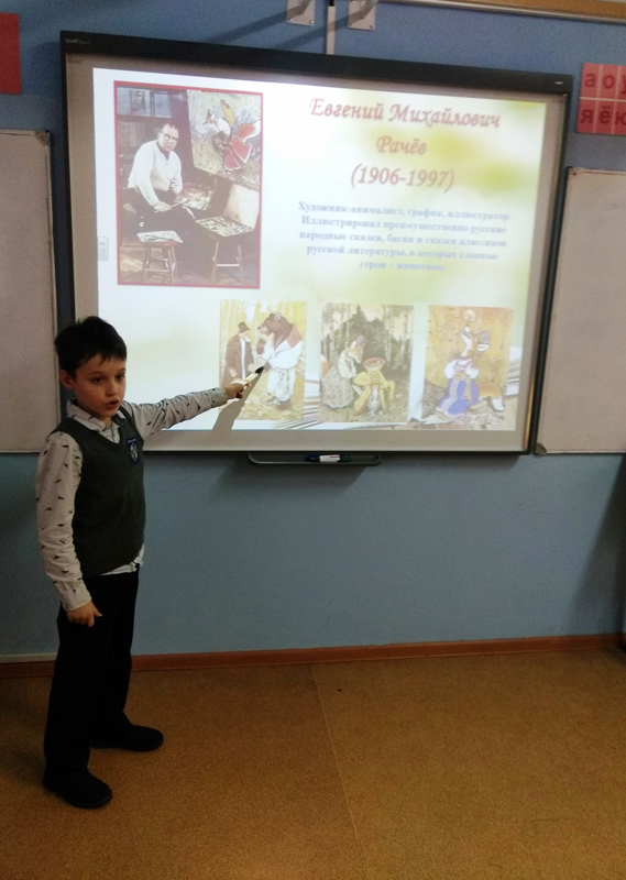 Посмотрев презентацию, ребята познакомились с детскими художниками И.Я. Билибиным, В.М. Конашевичем, В.Г Сутеевым, Б.А. Дехтеревым, Л. Владимирским, В. Чижовым и другими. Особое внимание было уделено художникам-анималистам Т. Мавриной, Е. Чарушину, Ю. Васнецову, Е.М. Рачеву. Дети сравнивали животных, нарисованных разными иллюстраторами, обсуждали, чем они отличаются друг от друга. А потом собрали пазл и ответили на вопросы викторины.