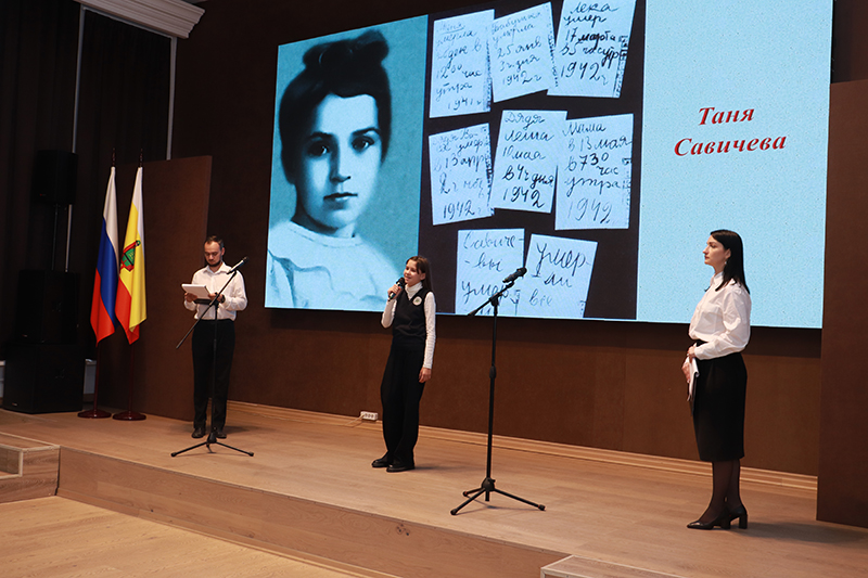 Директор Рязанской областной универсальной научной библиотеки имени Горького, председатель Общественной палаты Рязанской области, председатель регионального отделения Союза женщин России, заслуженный работник культуры Российской Федерации Наталья Николаевна Гришина рассказала присутствующим о том, что библиотека неизменно, каждый год проводит памятные мероприятия, посвященные истории блокады Ленинграда. Она обратилась к молодому поколению со словами: «Мы делаем все, чтобы сохранить память о подвиге ленинградцев и понять, что за сегодняшний мир были отданы миллионы жизней. Поколение,“крещенное войной”, не позволит врагам посягнуть на историю нашей страны и ее будущее».