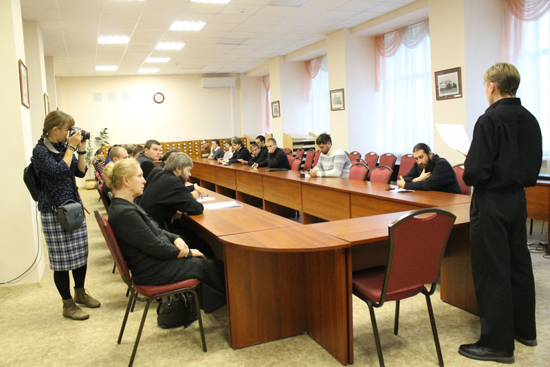 Ведущий круглого стола – преподаватель семинарии, священник Вячеслав Савинцев отметил, что церковные нестроения прекратились только в 1943 году, когда в Московском Кремле состоялась встреча И.В. Сталина и оставшихся на свободе митрополитов.