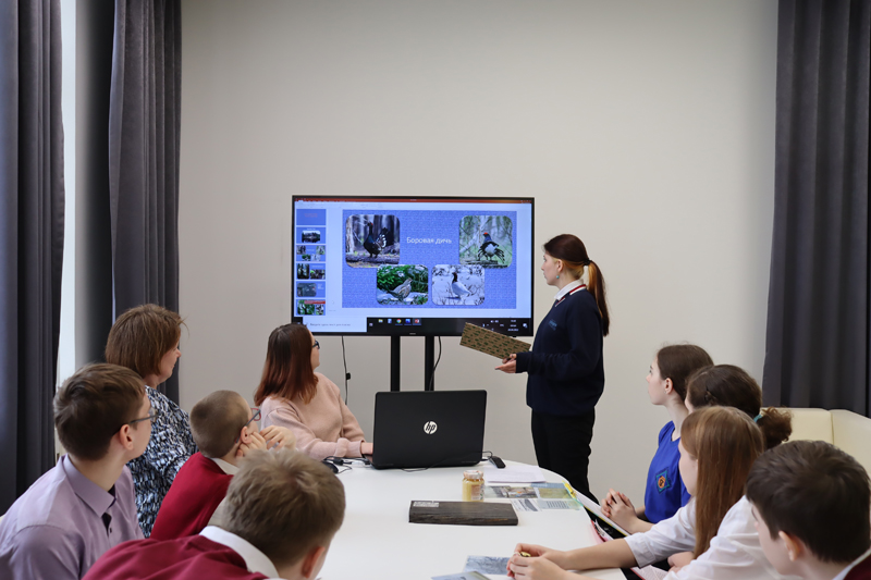 К работе круглого стола также присоединились экоактивисты из школы № 47 г. Рязани. Ребята рассказали о своей общественной экологической организации «Хозяин Мещеры» и поделились впечатлениями о путешествии «По тропе Паустовского», представили исследовательские работы «Гуттаперчевое растение», «Пожары в Мещере» и «Сеть мелиоративных каналов», «Осушение болот», «Дубрава» и познакомили с мобильной экспозицией «Музея Мещерского леса», рассказали об этимологии слова «бор».