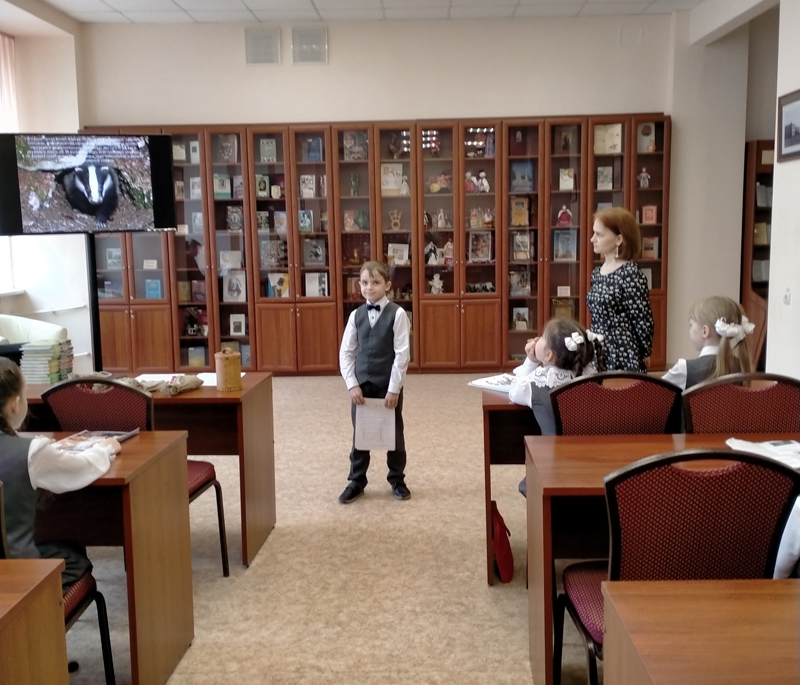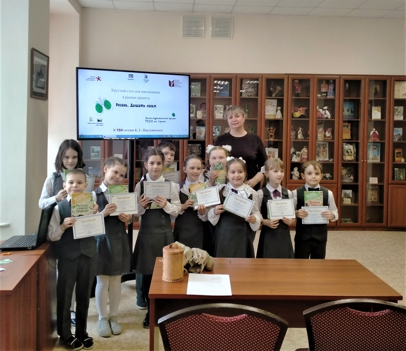 В заключительном мероприятии проекта «Дышать лесом» приняли участие ученики 2 класса школы № 21 г. Рязани. Дети поделились впечатлениями о прочитанных рассказах К.Г. Паустовского «Барсучий нос», «Заячьи лапы», «Кот-ворюга», «Мир чудес». Ребята вспомнили, какие животные и растения распространены на территории национального парка «Мещера» и Окского государственного заповедника, а также узнали, чем отличаются ель и сосна, какое растение ели мамонты, изучили волшебный туесок с лесными сокровищами – дикими яблоками, смородиной, шиповником и орехами. Юные читатели рассказали о барсуках и лисицах, медведях и рысях, вальдшнепах и зубрах, обсудили, почему нужно бережно относиться к природе и какие лекарства можно получить из лекарственных растений.