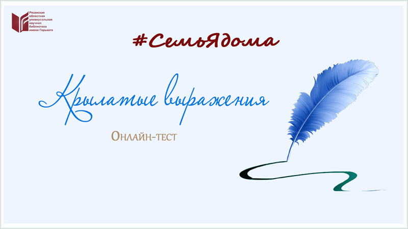 Сегодня мы предлагаем вам, в рубрике #СемьЯдома, поучаствовать в онлайн-тесте на знание крылатых фраз, пришедших в наш лексикон из художественной литературы.