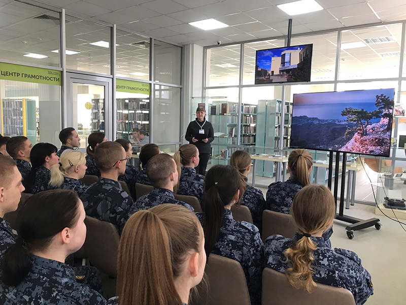 Сегодня сотрудники библиотеки провели для курсантов Академии ФСИН России просветительскую программу «Роль Крыма в Великой Отечественной войне и героическая оборона Севастополя и Керчи».