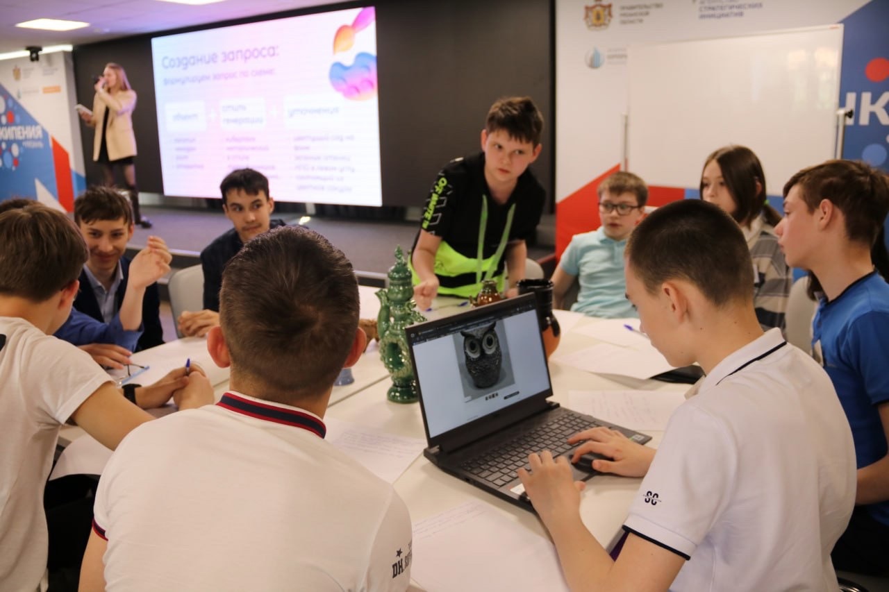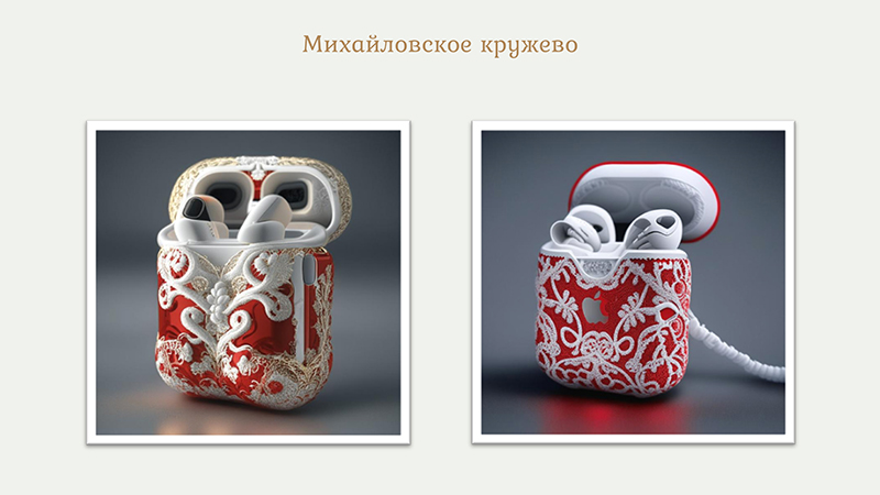 Участники разрабатывали концепты современных продуктов на основе аутентичных ремесел районов Рязанской области и провели презентации своих идей. Для визуализации своих идей ребята использовали нейросети, с помощью которых генерировали изображения своих креативных продуктов.