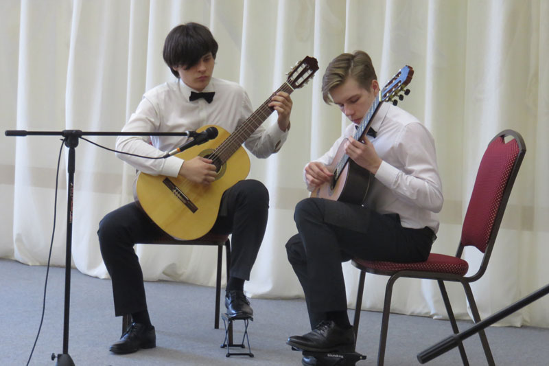 Яркой составляющей мероприятия стала концертная программа, органично вплетенная в контекст повествования. Слушатели получили огромное удовольствие, знакомясь с гитарным репертуаром. Участники концерта показали замечательное владение инструментом, чарующие звуки которого проникали в самое сердце. Пьесы русских и зарубежных композиторов, специально написанные для гитары, переложения народных песен, классические произведения, исполненные соло и в дуэте гитар, в содружестве гитары и скрипки, в качестве аккомпанирующего инструмента для голоса, показали выразительные возможности гитары, красоту и разнообразие ее звуковой палитры.