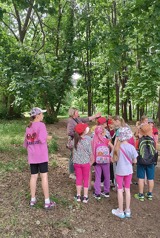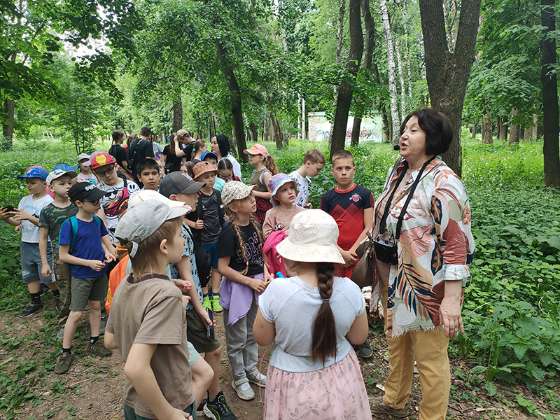 Сотрудники библиотеки имени Горького провели экскурсию «Легенды и были Рюминой рощи» для детей из летнего лагеря школы №19.
