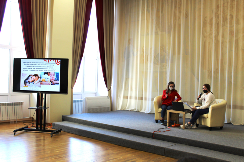 По статистике, март и апрель – месяцы, в которые вирусные заболевания особенно распространены. Грипп и ОРВИ относятся к числу наиболее массовых инфекционных заболеваний. А это означает, что их профилактика становится актуальной как никогда. Известно, что любую болезнь легче предотвратить, чем лечить, вот об этом и рассказали на лекции с презентацией волонтеры-медики Рязанского медицинского колледжа Милана Прошкина и Евгения Трушина.