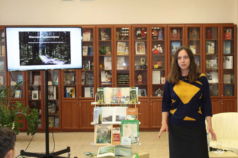 В рамках работы детской площадки Фестиваля национальной книги «Читающий мир» в краеведческом информационном отделе состоялась беседа с начальником отдела науки национального парка «Мещёра» Алиной Юрьевной Косяковой.