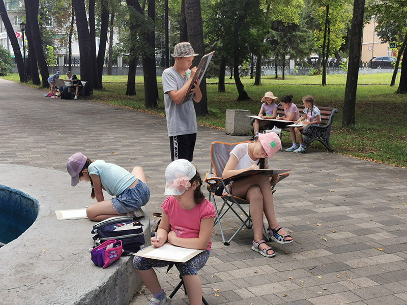 Первым делом для ребят провели интересную экскурсию по библиотеке. После все отправились на пленэр, где рисовали красоты Рязанского кремля под руководством заслуженного художника Российской Федерации Сергея Викторовича Абакумова.