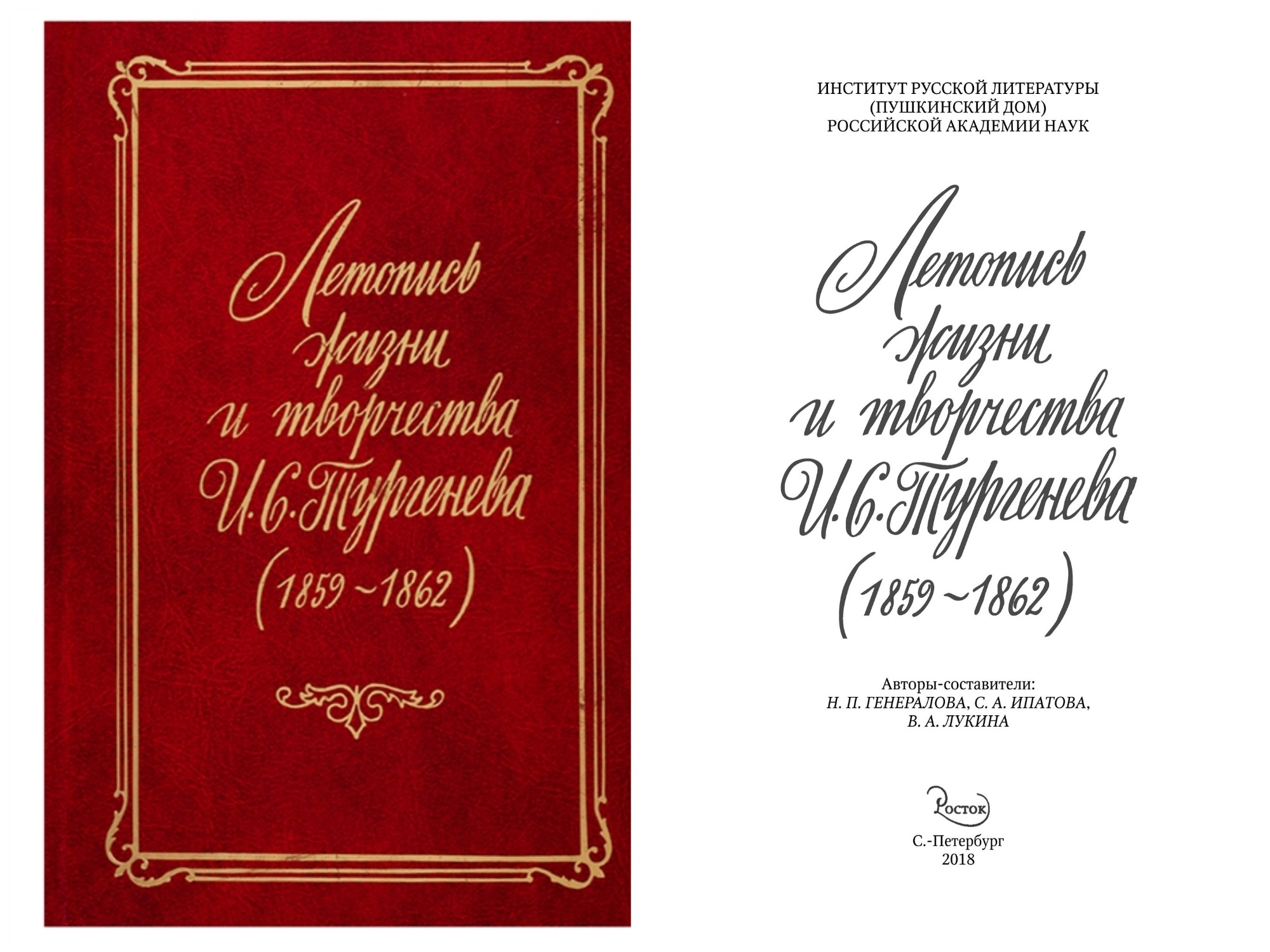 Летопись жизни и творчества И. С. Тургенева (1859–1862) / Институт русской литературы (Пушкинский Дом) Российской академии наук ; авт.-сост.: Н. П. Генералова, С. А. Ипатова, В. А. Лукина ; [отв. ред. Н. П. Генералова]. – Санкт-Петербург : Росток, 2018. – 678, [1] с., [27] л. портр., факс.