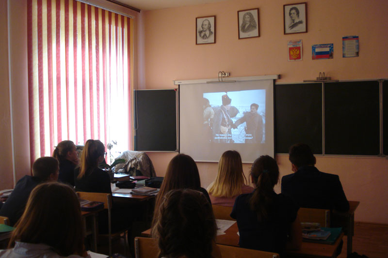 Собравшиеся посмотрели отрывки из художественных фильмов, снятых по произведениям автора, а также отрывки из документальных фильмов «Шолохов» и «В краю Тихого Дона».