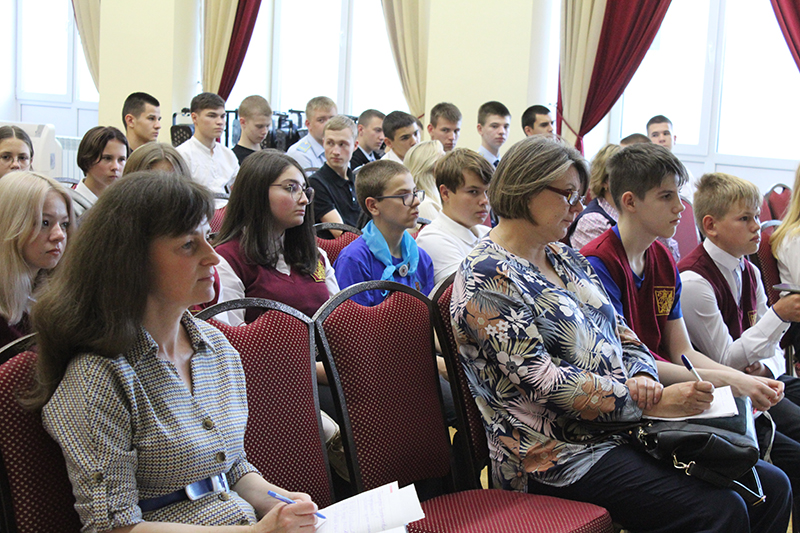 В зале собрались юные краеведы из Рязанского железнодорожного колледжа, а также 30-й, 47-й, 50-й и 65-й школ города.