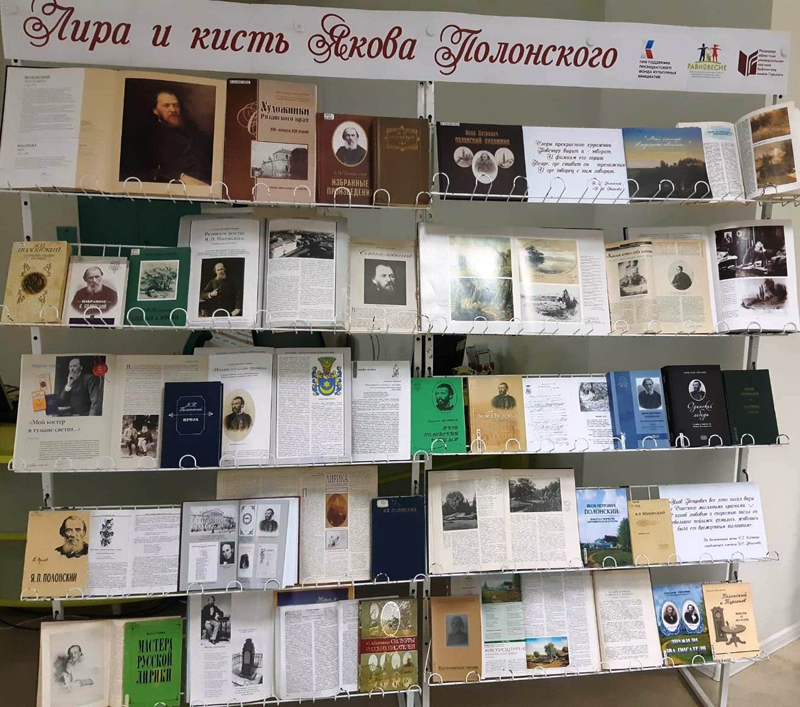 С 1 декабря в универсальном читальном зале библиотеки работает выставка «Лира и кисть Якова Полонского», подготовленная в рамках проекта «Детское ПроЧтение Якова Полонского» Рязанской региональной общественной организации по поддержке семьи и сохранению семейных ценностей «Равновесие». Проект поддержан в 2021 году Президентским фондом культурных инициатив.