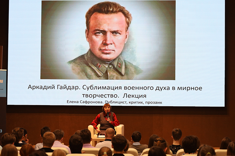 В рамках литературно-патриотического фестиваля «Творческая застава» литературный критик, публицист, прозаик Елена Валентиновна Сафронова прочитала рязанским школьникам лекцию, посвященную жизни и творчеству Аркадия Петровича Гайдара.