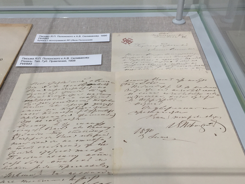 В Музейном центре студентов ждал увлекательный рассказ о литературной жизни Рязани в XIX–XX вв. Интересна судьба самого здания, в котором размещается Музейный центр. Яков Полонский в годы учебы ежедневно проходил в расположенную напротив этого здания гимназию. Рядом находится Николо-Дворянский храм, прихожанами которого были Полонские. Рязанский историко-архитектурный музей-заповедник более века хранит реликвии, связанные с именем Я. П. Полонского. Дом, построенный на главной улице города в 1804 году, с середины 1840-х гг. сдавался в наем. В 1858 – 1860 гг. здесь жил М. Е. Салтыков-Щедрин, служивший в это время рязанским вице-губернатором. В эти годы дом на улице Астраханской посещали И. С. Аксаков, А. И. Кошелев, П. П. Семенов-Тян-Шанский.
