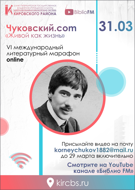 25 февраля 2022 года Централизованная библиотечная система Кировского района Санкт-Петербурга дала старт VI Литературному online-марафону «Чуковский.com»: «Живой как жизнь».