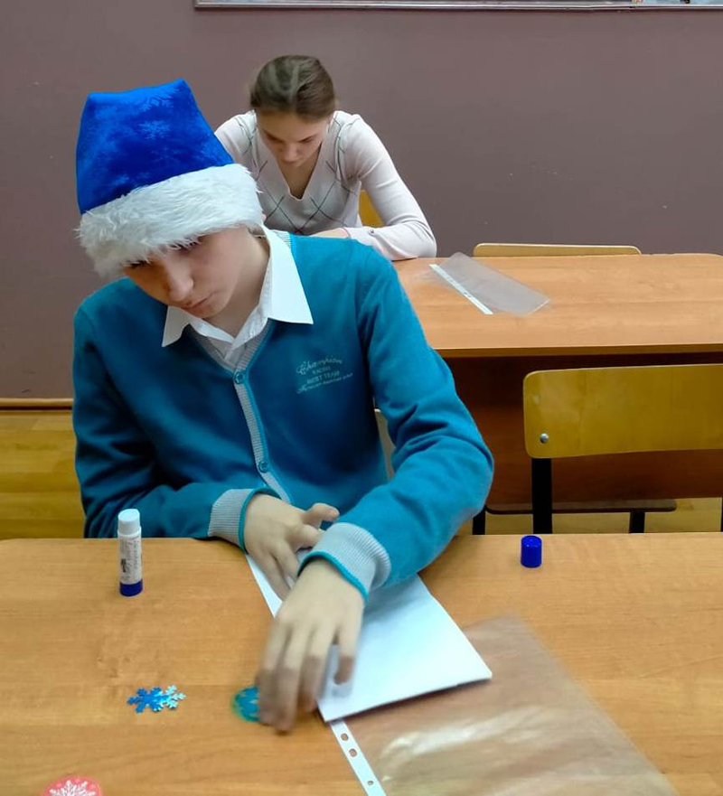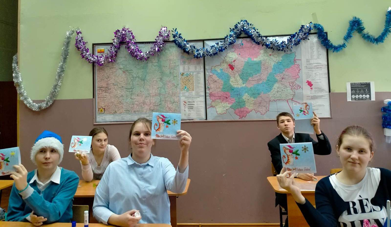 В рязанской школе №10 состоялся мастер-класс по изготовлению новогодней открытки, в организации которого оказали помощь сотрудники кафедры периодических изданий, подготовив электронную презентацию «Из истории праздника», викторину и материалы для открыток.