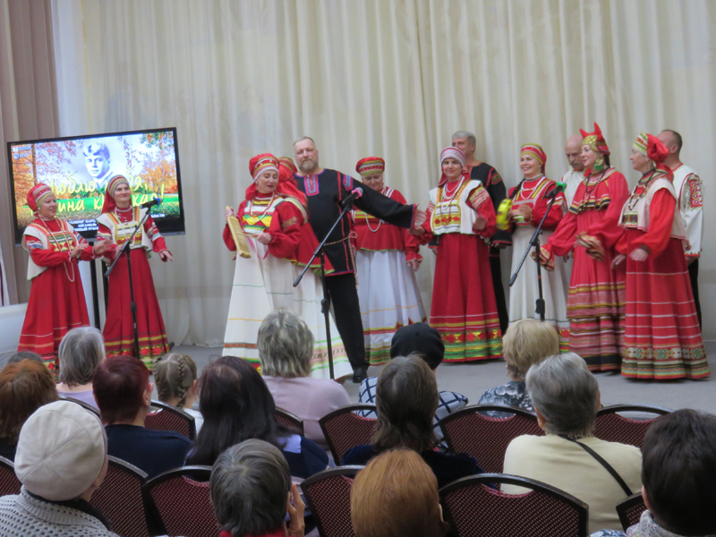 В прекрасном исполнении коллектива прозвучали всеми любимые песни рязанских композиторов – Евгения Попова, Александра Ермакова, Александра Аверкина, Юрия Ананьева на стихи Сергея Есенина: «Россия поклоняется Есенину», «На лазоревые ткани», «Ты меня не любишь, не жалеешь» и другие.