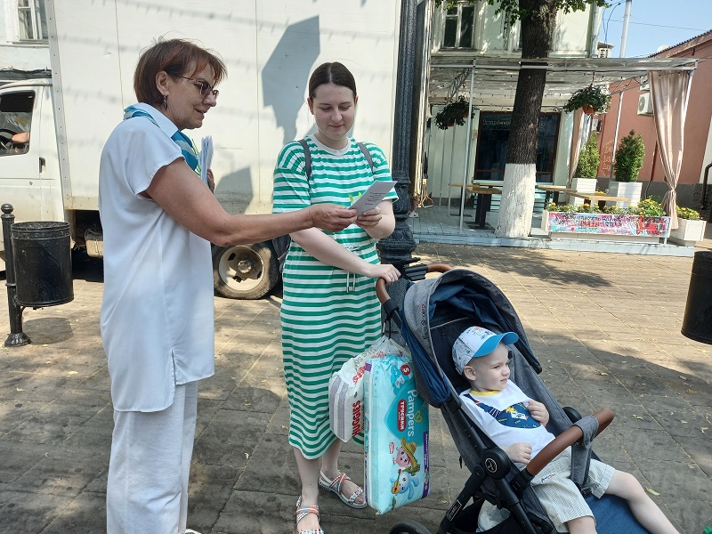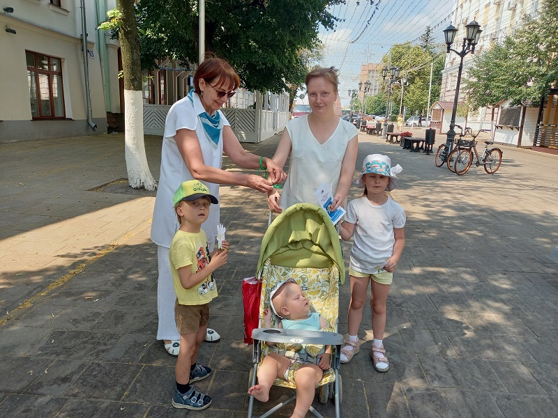 Молодым женщинам сотрудники библиотеки повязали на руку зеленую ленточку – знак того, что каждый ребёнок имеет право на жизнь. Таким образом, сотрудники библиотеки призвали участников акции присоединиться к социальному проекту «Зеленая ленточка», целью которого является привлечение внимания общества к проблемам защиты жизни детей, формированию положительного отношения к многодетным семьям, деторождению.