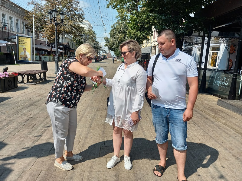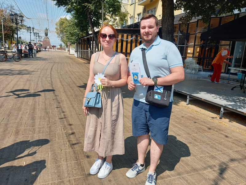 По сложившейся традиции в этот праздничный день сотрудники библиотеки провели акцию «Любовью дорожить умейте». Библиотекари вышли на улицы Рязани, чтобы напомнить жителям и гостям города о празднике, и подарили на память буклеты и сделанные своими руками ромашки.