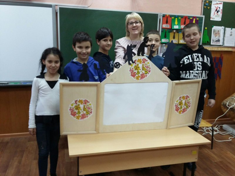 В проходящий в России Год театра библиотекари решили не только познакомить ребят с разными театральными формами и жанрами, но и дать им возможность примерить на себя разные театральные профессии и даже выступить с собственным спектаклем. Для постановки была выбрана русская народная сказка «Колобок», знакомая каждому с пеленок. Девчонки и мальчишки с огромным удовольствием готовили декорации для будущей постановки, разучивали слова, тренировались в кукловождении.