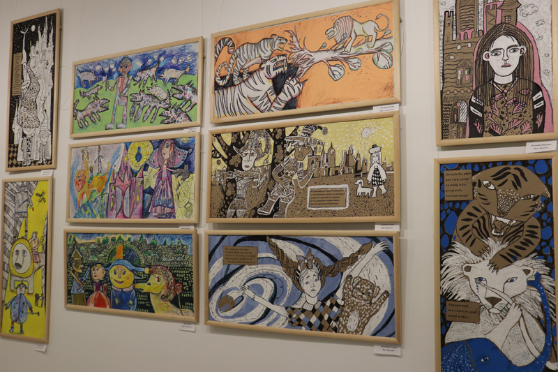Юные художники студии попробовали себя в роли иллюстраторов, которым неведомы творческие ограничения: можно рисовать в разных техниках, пользоваться необычными художественными материалами и даже немного дополнять замысел писателя. На выставке также экспонируются пластилиновые фигуры сказочных персонажей, представлены мудрые изречения в технике леттеринга.