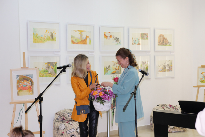 Насыщенный событиями и яркими красками праздник в библиотеке начался с открытия выставки члена Союза художников России Екатерины Гончаровой «Сохрани в себе детство». О своем творчестве Екатерина говорит так: «Для меня иллюстрация и создание милых персонажей – это способ достучаться до любого зрителя. Это способ нести добро в мир и напоминать каждому взрослому, что когда-то и он был ребенком».