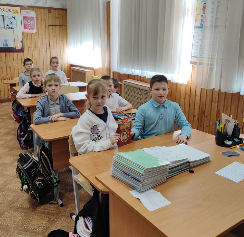 Ребята познакомились с книгой, рассказывающей о мальчишках и девчонках, чьи имена навеки вписаны в историю. Это Леня Голиков, Марат Казей, Лара Михеенко, Валя Котик, Зина Портнова, Таня Морозова, Витя Коробков, Володя Казьмин. Слушая рассказ библиотекаря, дети погрузились в атмосферу нелегкого и трагического для нашей страны времени. Ученики вдохновились отвагой и мужеством маленьких героев, которые, несмотря на свой юный возраст, смогли пройти через все трудности и стать настоящими защитниками Родины.