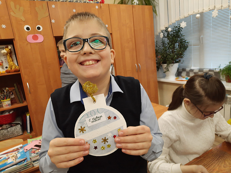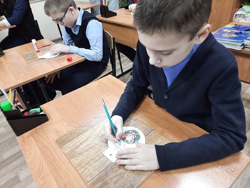 Новогодние праздники шагают по всем городам и весям нашей страны, добрались они и до Рязанской школы-интерната. Накануне новогоднего утренника сотрудники Центра литературы по искусству подготовили для учеников 2 класса мастер-класс по созданию новогоднего украшения.