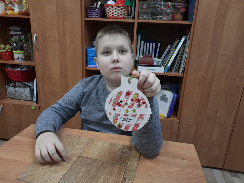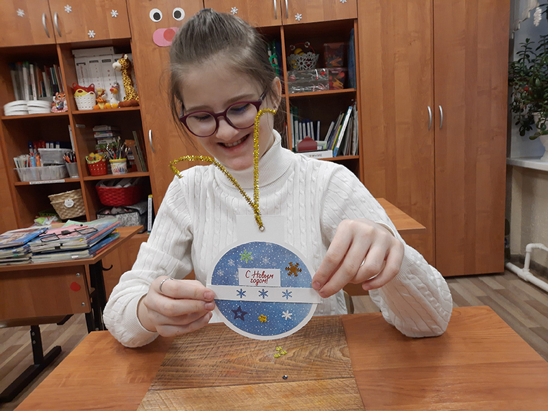 Мальчишки и девчонки на время превратились в настоящих помощников Деда Мороза и своими руками изготовили подарок для близких. Небольшой сувенир был сделан в виде шара, который с одной стороны нужно было украсить предложенными материалами, а с другой стороны – написать пожелание. Все участники отлично справились с заданием, с удовольствием провели фотосессию у ёлочки и обещали с таким же веселым настроением встретить Новый год.