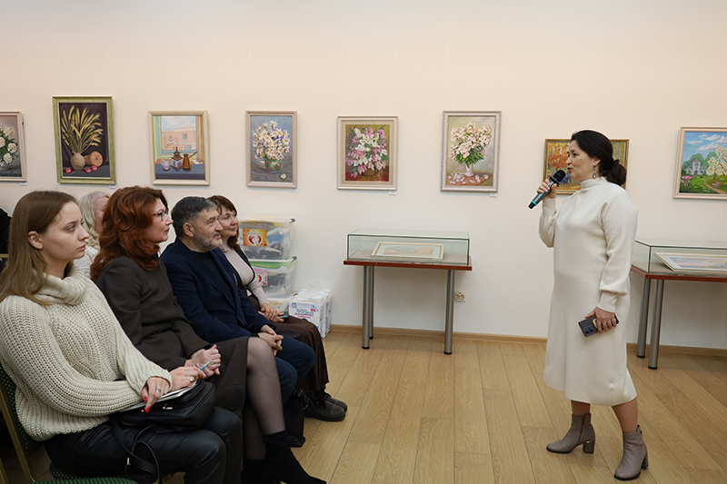 Внимание гостей привлекли книжные выставки из фондов библиотеки имени Горького «Сильная семья – сильная страна», «Все на земле от материнских рук» и персональная выставка члена творческого союза художников Ольги Григорьевны Такижбаевой «Вдохновение цветом».