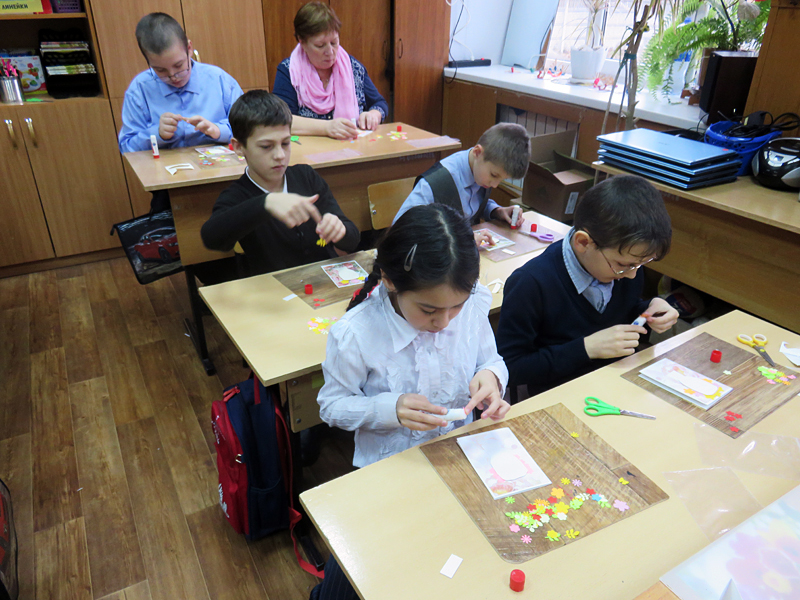 В преддверии самого трогательного праздника – Дня матери – сотрудники Центра литературы по искусству провели для ребят из Рязанской школы-интерната творческий мастер-класс «Открытка для мамы».