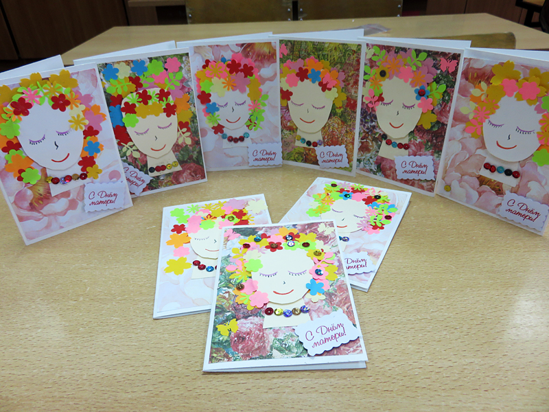 Вот уже два десятка лет в последнее воскресенье ноября отмечается этот международного формата праздник в нашей стране. В этот день дети всех возрастов спешат сказать теплые слова своим мамам, порадовать их цветами и подарками. Девчонки и мальчишки с огромным удовольствием мастерили самодельные открытки для любимых мам. Работа над открыткой оказалась не очень простой. Предстояло создать оригинальный женский портрет, используя только ножницы, клей и бумагу, не забывая о композиции и правильном конструировании образа.