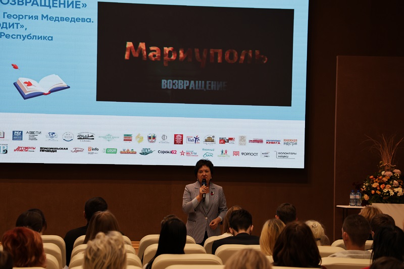 С приветственным словом к участникам презентации обратилась директор Рязанской областной универсальной научной библиотеки имени Горького, председатель Общественной палаты Рязанской области, заслуженный работник культуры Российской Федерации Наталья Николаевна Гришина. Она рассказала, что Мариуполь сегодня является символом мужества и героизма, то, что пережили люди в то время, отозвалось в сердцах всей страны. Наталья Николаевна отметила, что библиотека Горького активно помогает бойцам специальной военной операции.